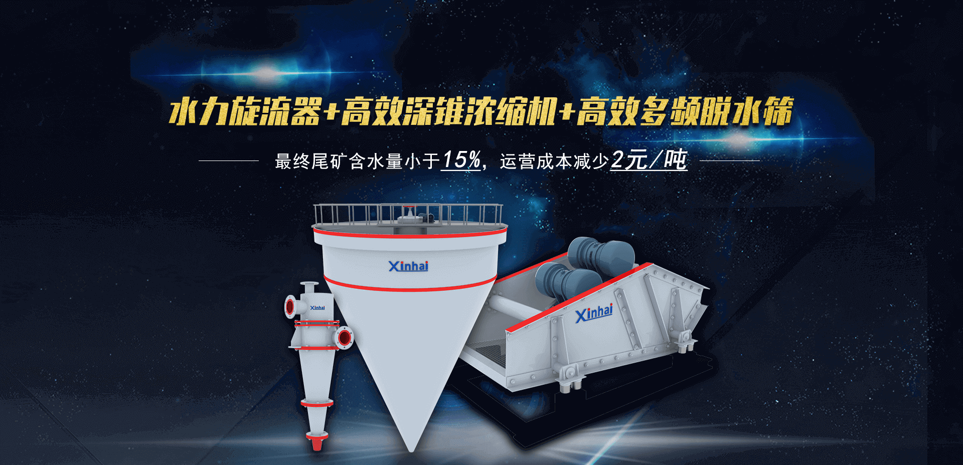 煙臺鑫海公司是國內很早推廣尾礦干排工藝和尾礦干排設備的廠家,自2009年開始研發的第三代尾礦干排工藝和尾礦干排設備——“濃縮脫水型水力旋流器+高效深錐多錐濃密機+高效多頻脫水篩”聯合機組系統脫水工藝取得突破性的成功,該套工藝具有投資較少、功耗較低、成本較低、適合的礦漿粒級較寬的特點。鑫海尾礦干排系統通過先進節能的工藝系統完成尾礦的較低運行成本的固液分離,絕對是您尾礦處理的較好選擇。