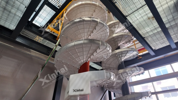 螺旋溜槽是重選階段常用的設(shè)備。螺旋溜槽是一款利用白云石與脈石礦物的比重、粒度、形狀上的差異進(jìn)行分選的設(shè)備。具有結(jié)構(gòu)簡單、無動力、能耗低、分選效率高等特點(diǎn)。